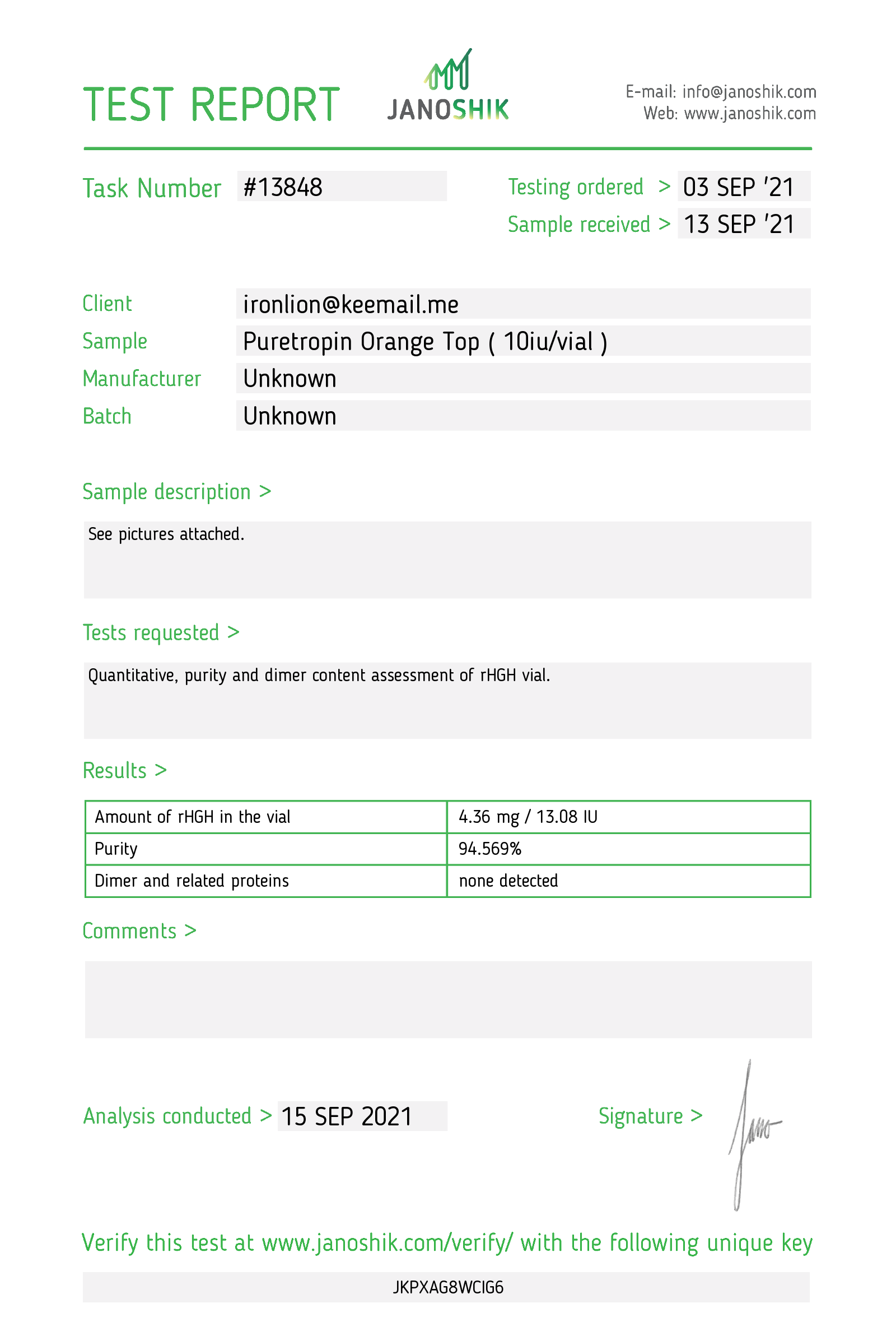 orange top puretropin gh HPLC testing 2021